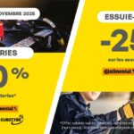 -25% sur les essuie-glaces achetés et posés en magasin (hors pose) sur les marques Continental, et Valeo